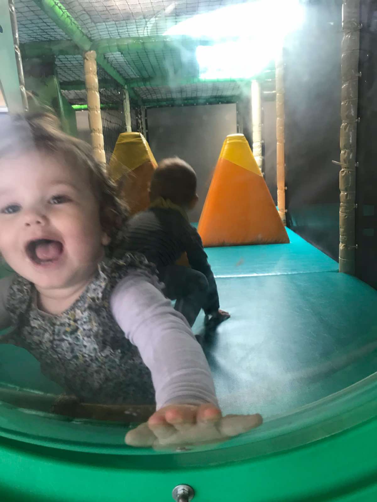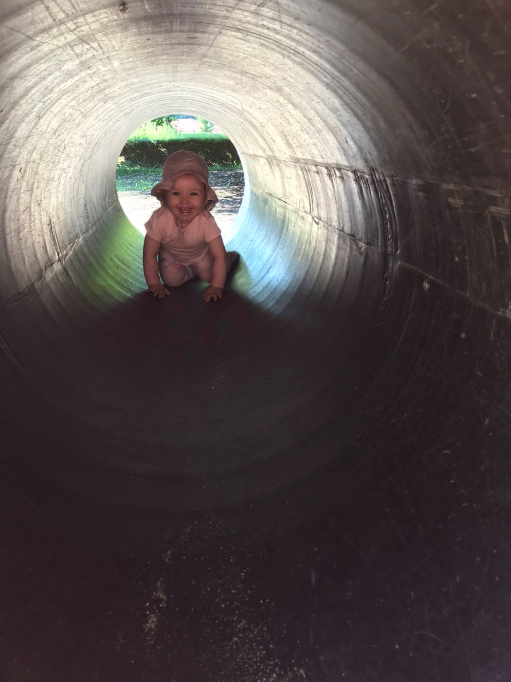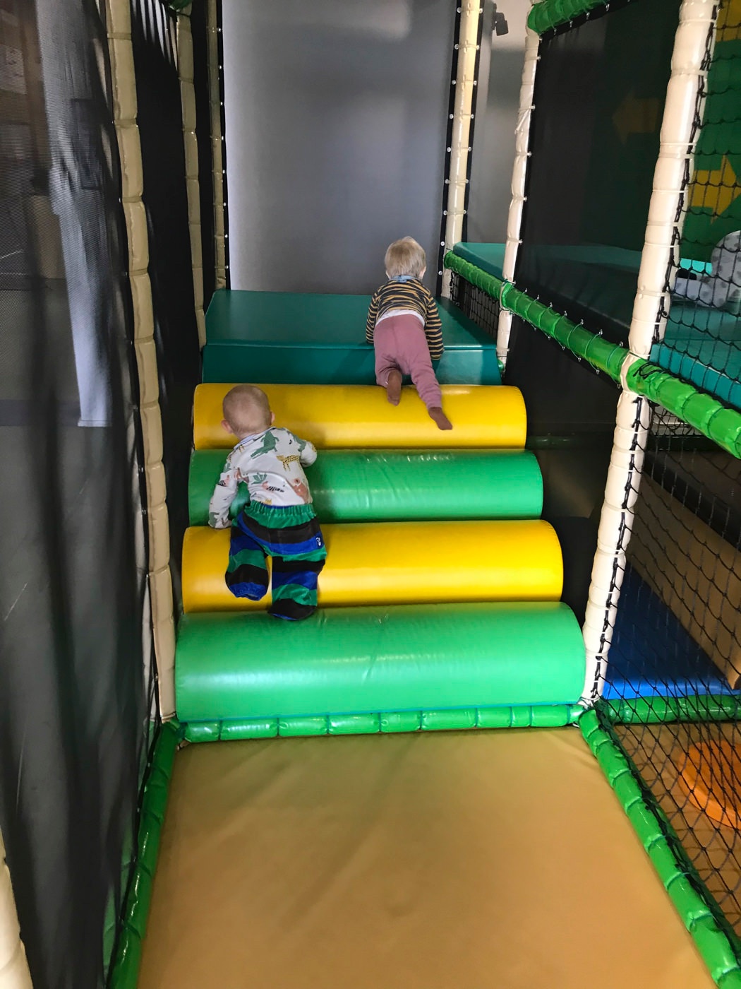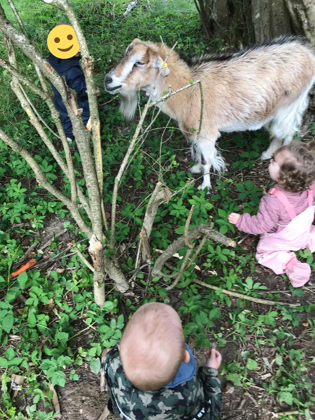 Vi er ofte på tur rundt i Hørning, fx på en legeplads, på udkig efter gravkøer, tog, dyr, eller hvad vi nu kan finde på.