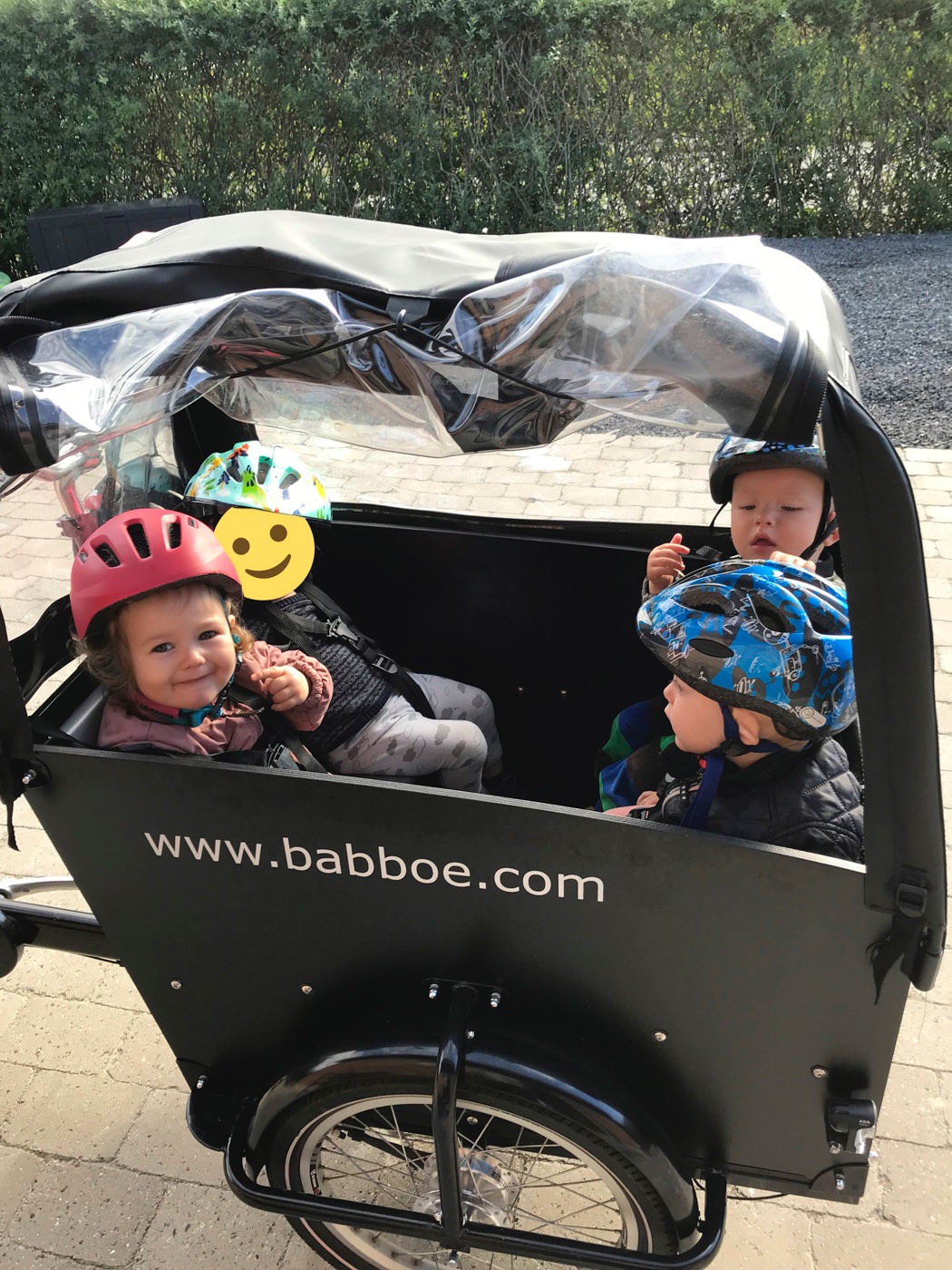 Jeg har en ladcykel til rådighed og en barnevogn med plads til fire børn. Nogen gange kan turen også gå til andre byer med tog