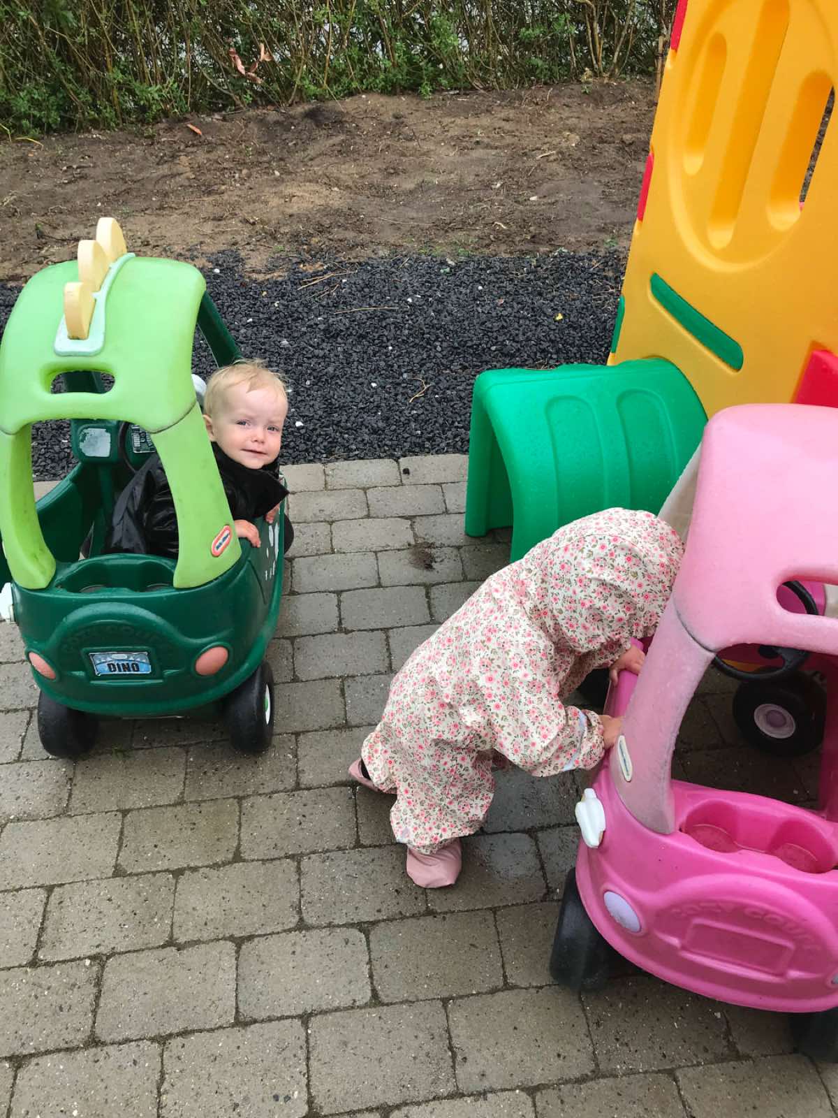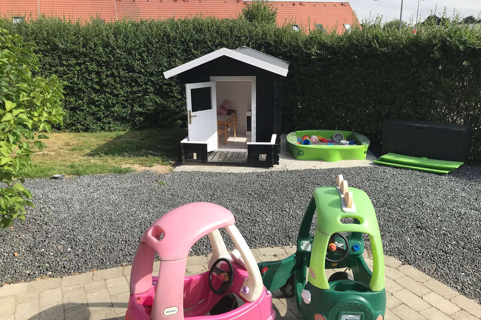 Barnevognen må gerne stå hos mig fra mandag til fredag. Barnevognene står i min lukkede carport, når de ikke er i brug. Den skal tages med hjem i weekenden. Ved sovetid sover børnene forskellige steder rundt i vores store lukkede have.