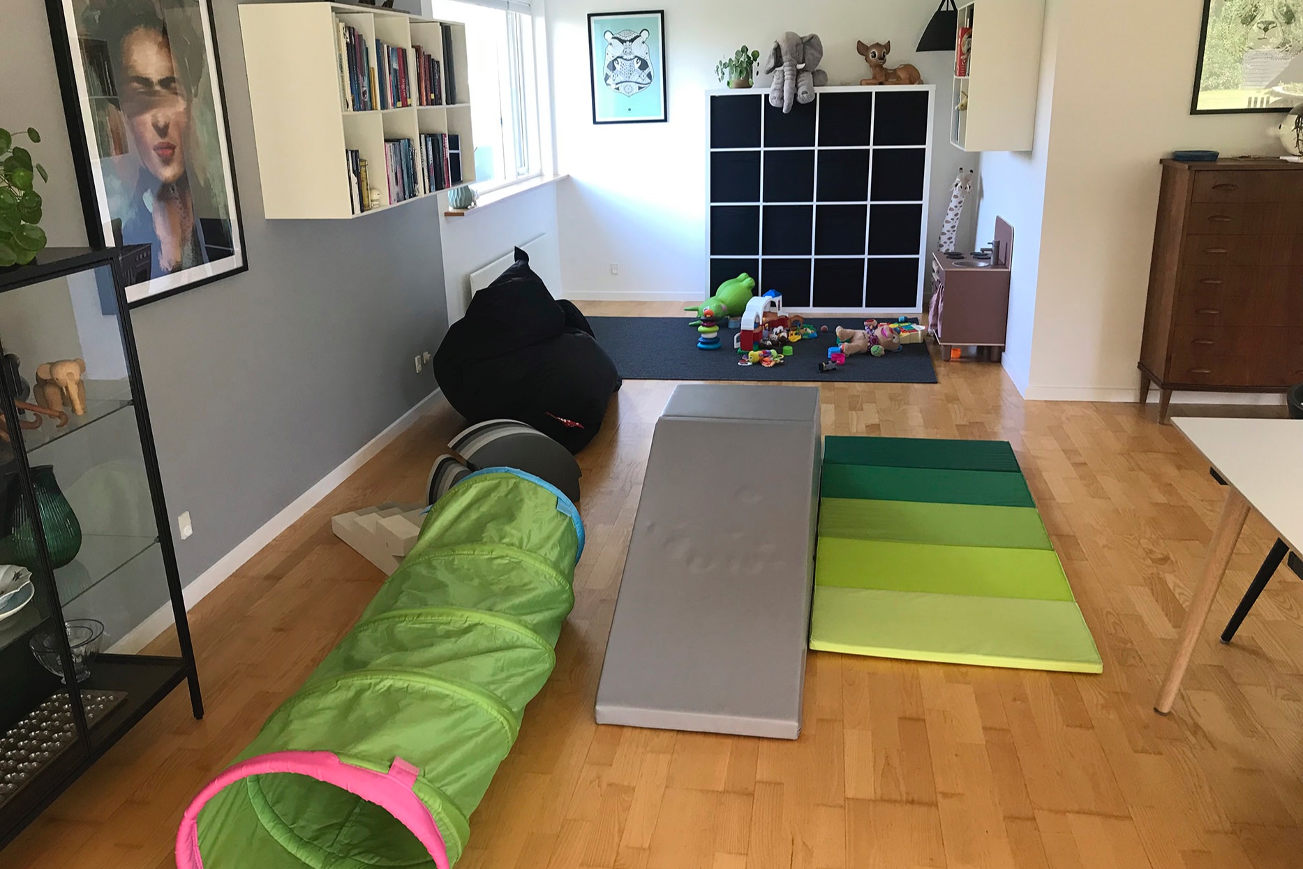 Vi kan også sagtens være hjemme og spise hjemmebagte boller og hygge i haven, lave tumlebane og puslespil.